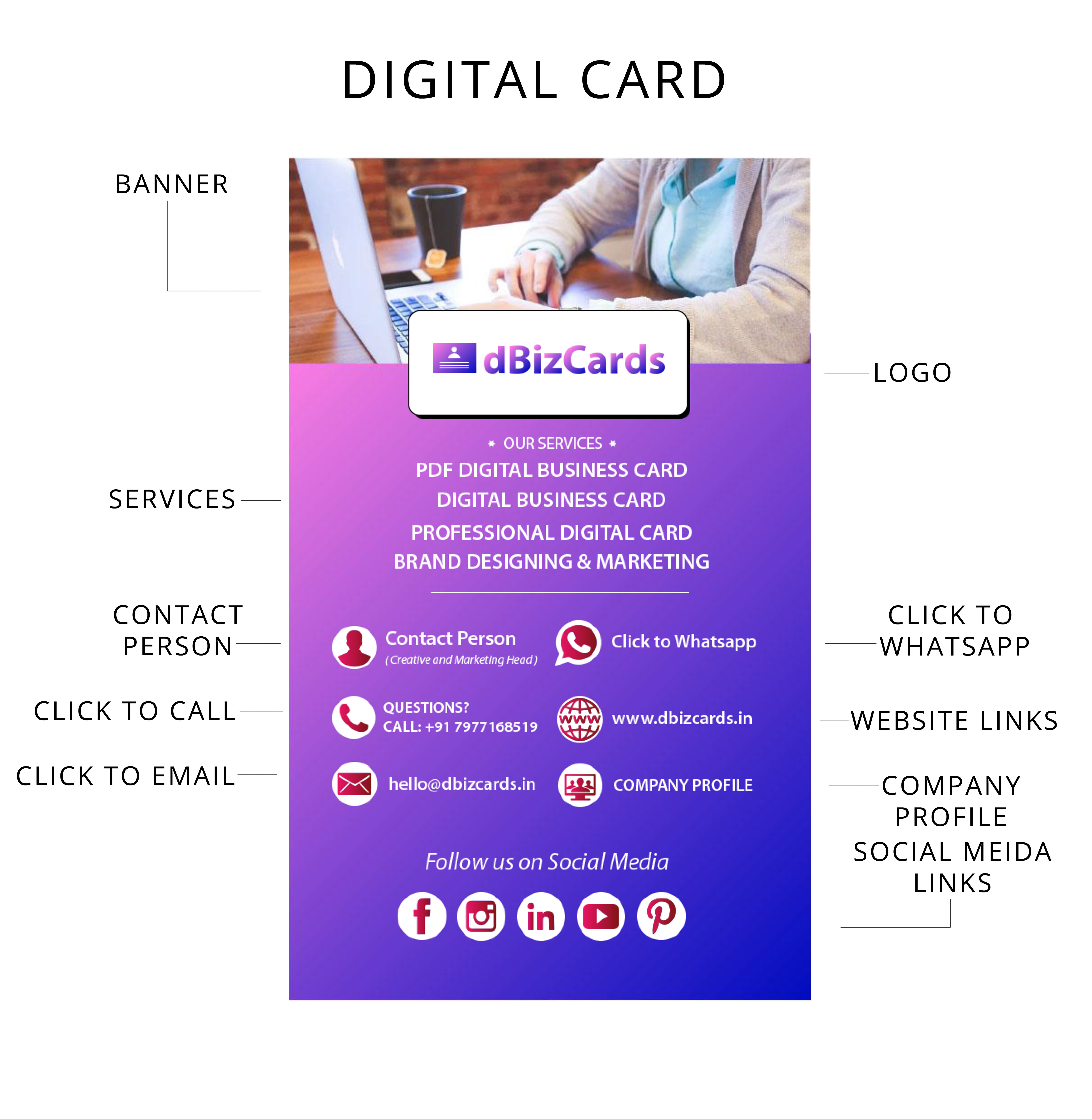 Forget about old fashioned printed visiting cards that generally go to the dustbin. With our Digital Business Card, you can share your business and contact information…